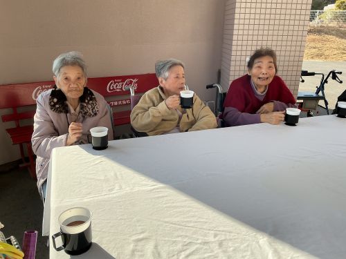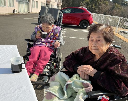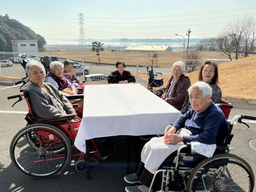 春めいてきた陽気の中、晴風園の外で女子会をしました。春のお花のように皆様の笑顔がほっこり咲き揃いました。